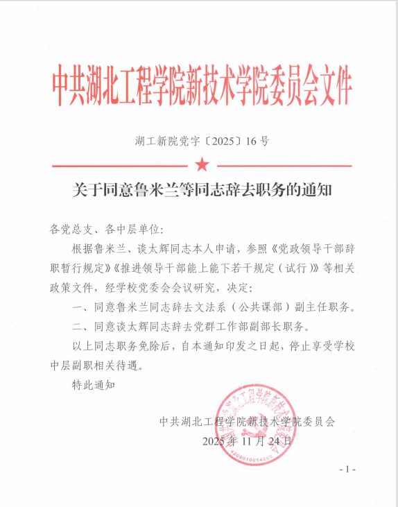 关于同意鲁米兰等同志辞去职务的通知